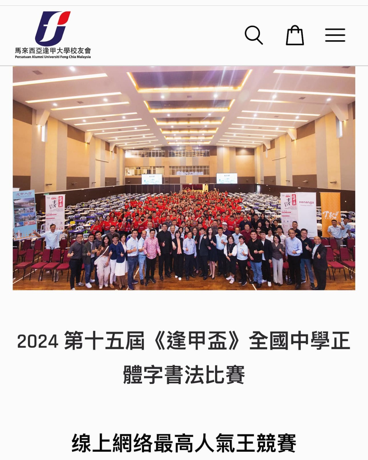 2024第十五屆《逢甲盃》全國中學正體字書法比賽 網路人氣王競賽